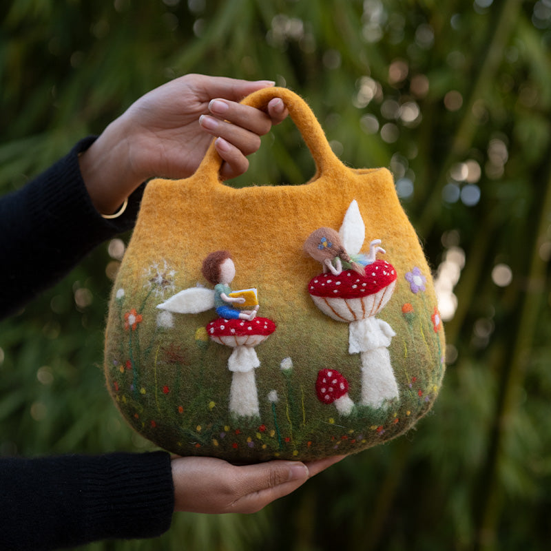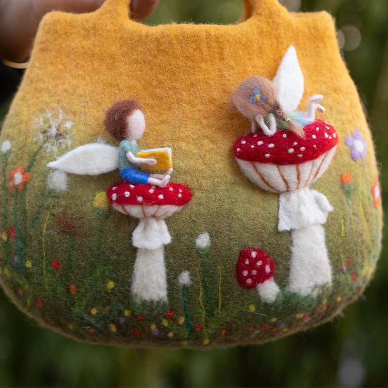 Timeless Appeal: Embrace the timeless allure of felted wool with the Angelic Study Time on Red Mushroom Bag. Its enchanting design enhances your everyday style, making it suitable for both urban outings and countryside escapes.